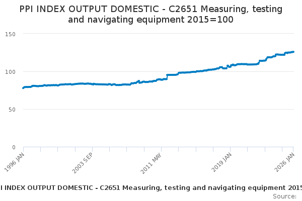 Download this time seriesPPI INDEX OUTPUT DOMESTIC - C2651 Measuring, testing and navigating equipment 2015=100