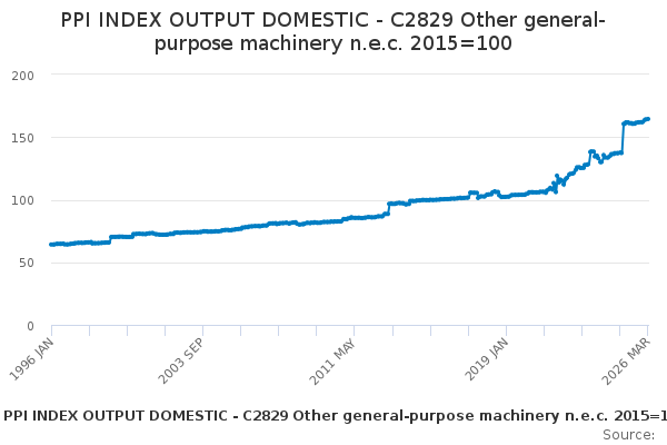 Download this time seriesPPI INDEX OUTPUT DOMESTIC - C2829 Other general-purpose machinery n.e.c. 2015=100