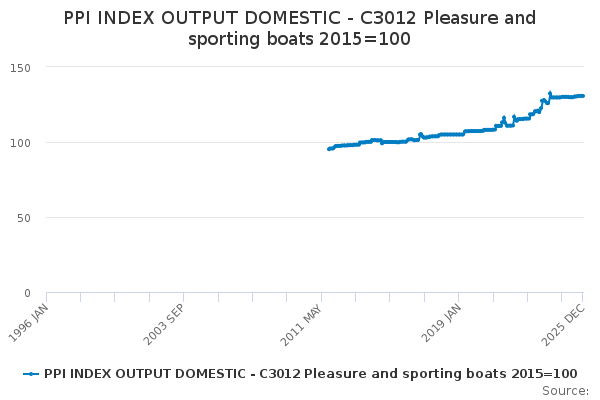 Download this time seriesPPI INDEX OUTPUT DOMESTIC - C3012 Pleasure and sporting boats 2015=100