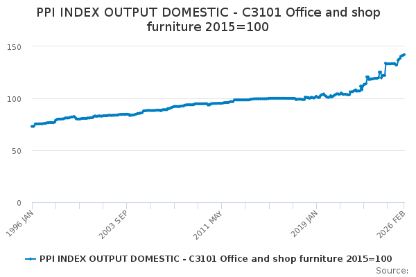 Download this time seriesPPI INDEX OUTPUT DOMESTIC - C3101 Office and shop furniture 2015=100