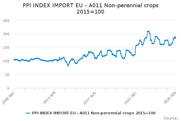 Download this time seriesPPI INDEX IMPORT EU - A011 Non-perennial crops 2015=100