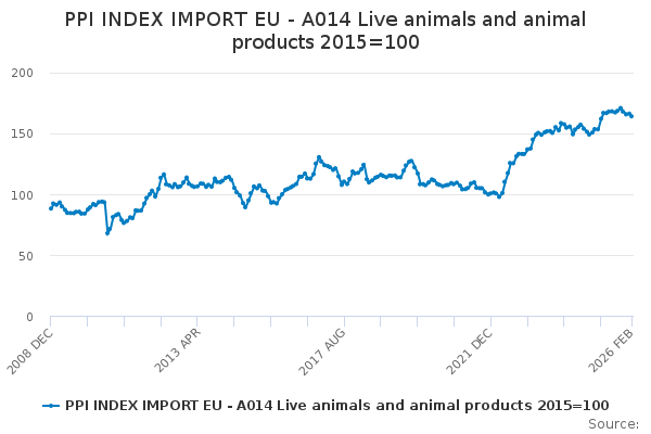 Download this time seriesPPI INDEX IMPORT EU - A014 Live animals and animal products 2015=100