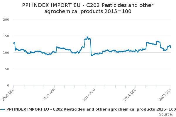 Download this time seriesPPI INDEX IMPORT EU - C202 Pesticides and other agrochemical products 2015=100