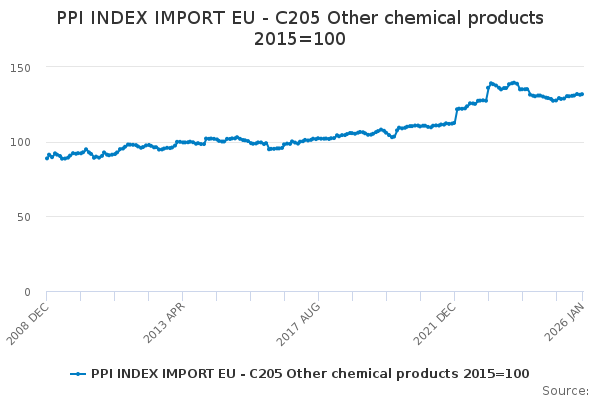 Download this time seriesPPI INDEX IMPORT EU - C205 Other chemical products 2015=100