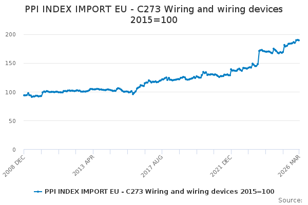 Download this time seriesPPI INDEX IMPORT EU - C273 Wiring and wiring devices 2015=100