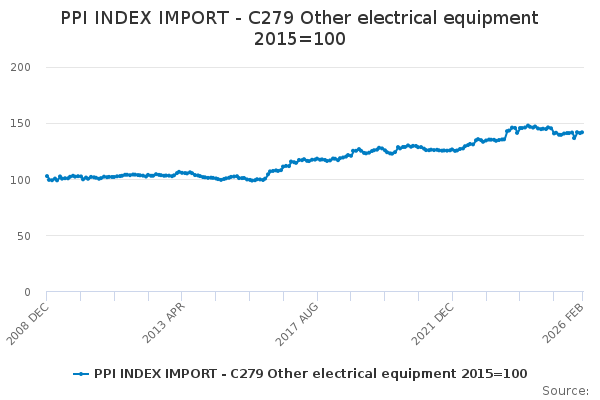 Download this time seriesPPI INDEX IMPORT - C279 Other electrical equipment 2015=100