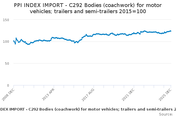 Download this time seriesPPI INDEX IMPORT - C292 Bodies (coachwork) for motor vehicles; trailers and semi-trailers 2015=100