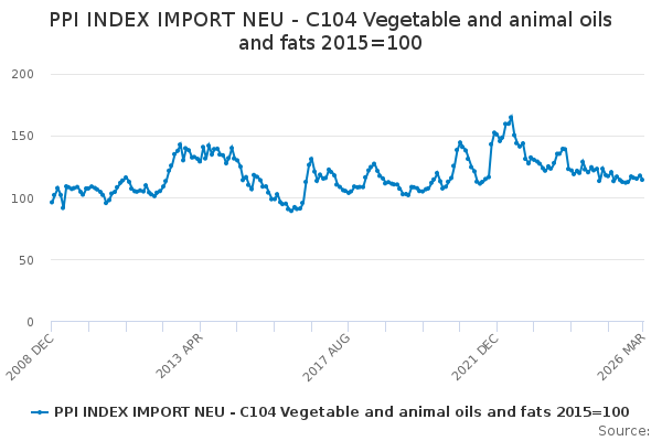 Download this time seriesPPI INDEX IMPORT NEU - C104 Vegetable and animal oils and fats 2015=100