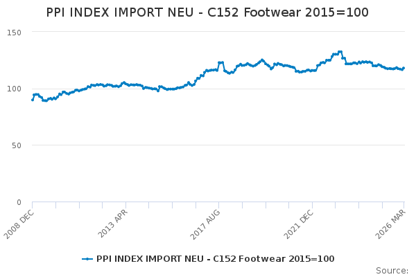 Download this time seriesPPI INDEX IMPORT NEU - C152 Footwear 2015=100