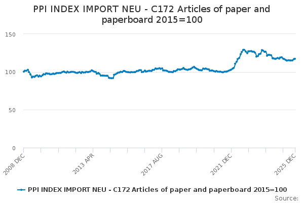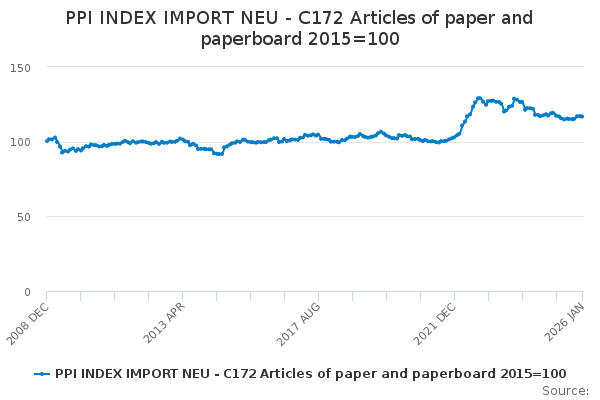 Download this time seriesPPI INDEX IMPORT NEU - C172 Articles of paper and paperboard 2015=100