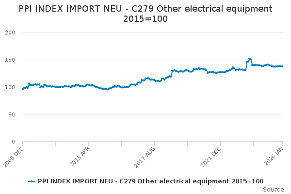 Download this time seriesPPI INDEX IMPORT NEU - C279 Other electrical equipment 2015=100