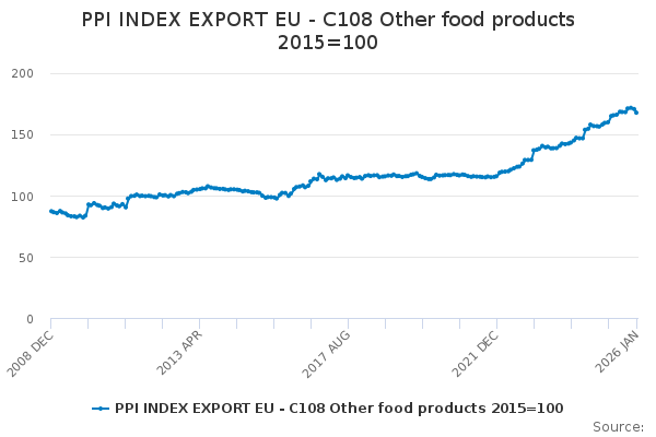 Download this time seriesPPI INDEX EXPORT EU - C108 Other food products 2015=100