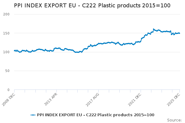 Download this time seriesPPI INDEX EXPORT EU - C222 Plastic products 2015=100