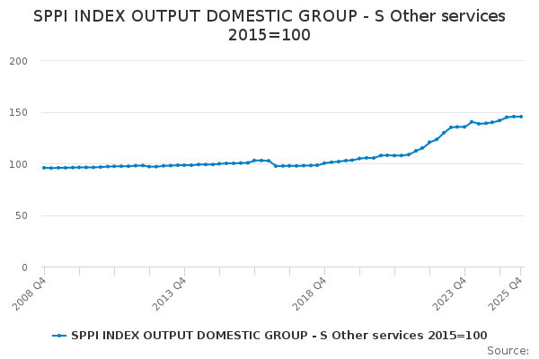 Download this time seriesSPPI INDEX OUTPUT DOMESTIC GROUP - S Other services 2015=100