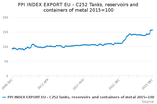 Download this time seriesPPI INDEX EXPORT EU - C252 Tanks, reservoirs and containers of metal 2015=100