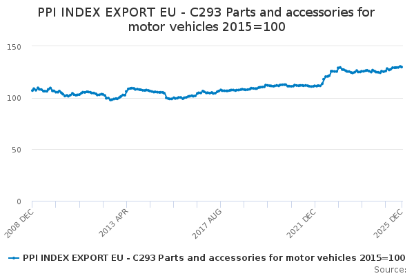 Download this time seriesPPI INDEX EXPORT EU - C293 Parts and accessories for motor vehicles 2015=100