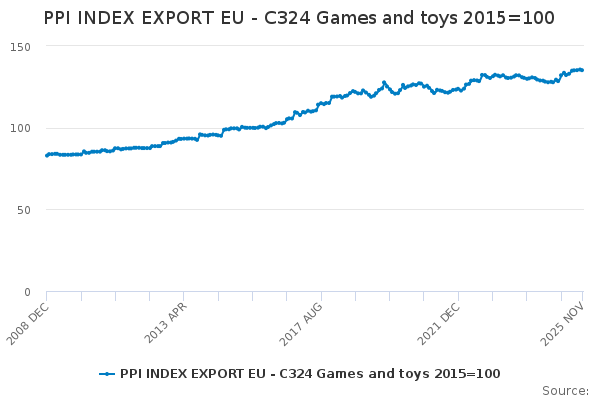 Download this time seriesPPI INDEX EXPORT EU - C324 Games and toys 2015=100