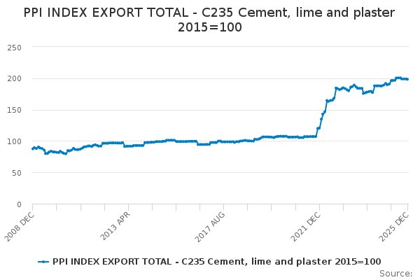 Download this time seriesPPI INDEX EXPORT TOTAL - C235 Cement, lime and plaster 2015=100