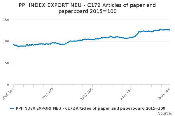 Download this time seriesPPI INDEX EXPORT NEU - C172 Articles of paper and paperboard 2015=100
