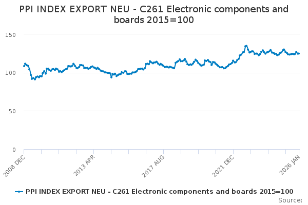 Download this time seriesPPI INDEX EXPORT NEU - C261 Electronic components and boards 2015=100
