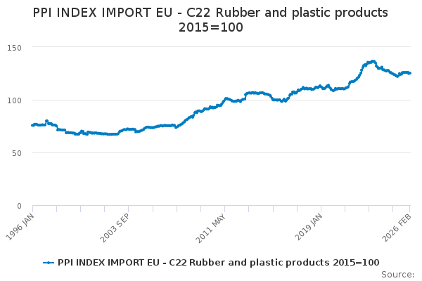 Download this time seriesPPI INDEX IMPORT EU - C22 Rubber and plastic products 2015=100