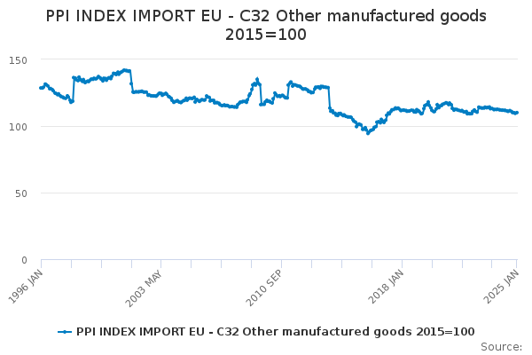 Download this time seriesPPI INDEX IMPORT EU - C32 Other manufactured goods 2015=100