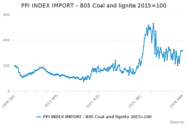 Download this time seriesPPI INDEX IMPORT - B05 Coal and lignite 2015=100