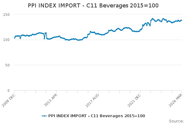 Download this time seriesPPI INDEX IMPORT - C11 Beverages 2015=100