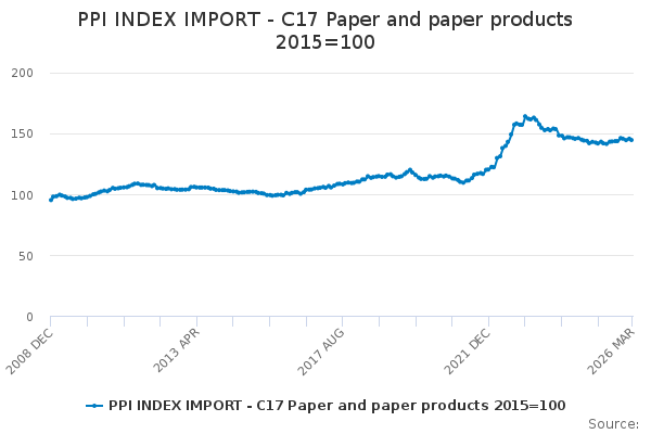 Download this time seriesPPI INDEX IMPORT - C17 Paper and paper products 2015=100