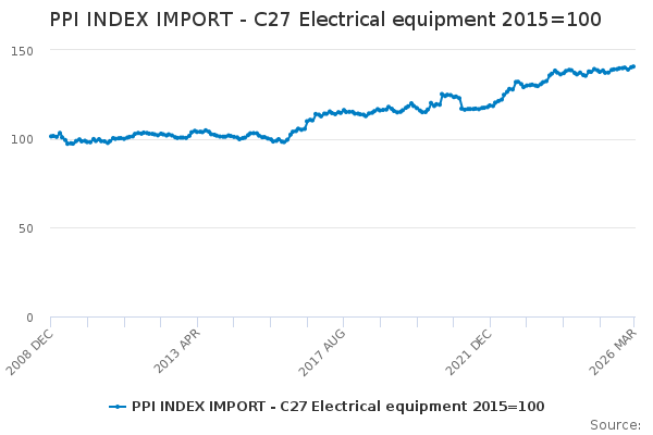 Download this time seriesPPI INDEX IMPORT - C27 Electrical equipment 2015=100