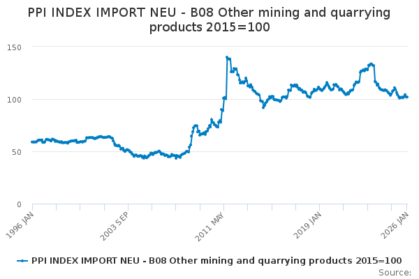 Download this time seriesPPI INDEX IMPORT NEU - B08 Other mining and quarrying products 2015=100