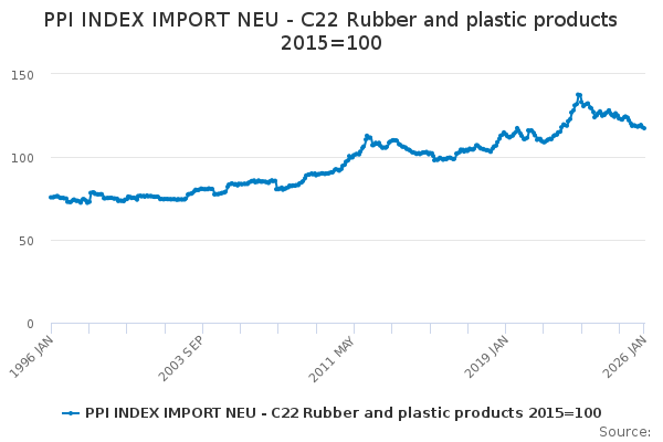 Download this time seriesPPI INDEX IMPORT NEU - C22 Rubber and plastic products 2015=100