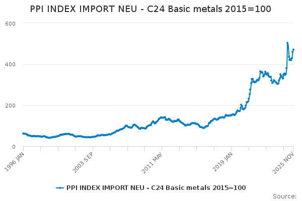 Download this time seriesPPI INDEX IMPORT NEU - C24 Basic metals 2015=100