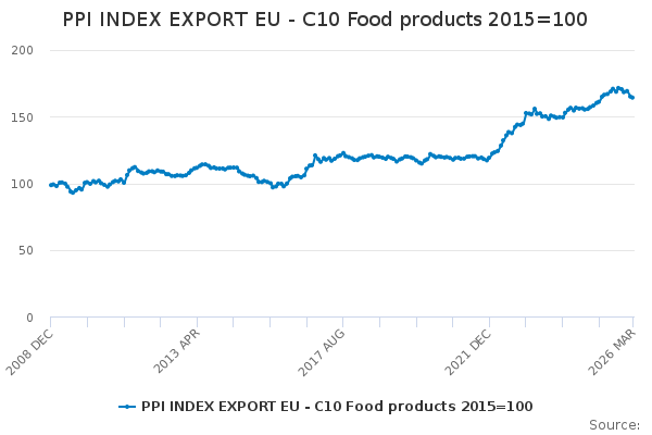 Download this time seriesPPI INDEX EXPORT EU - C10 Food products 2015=100