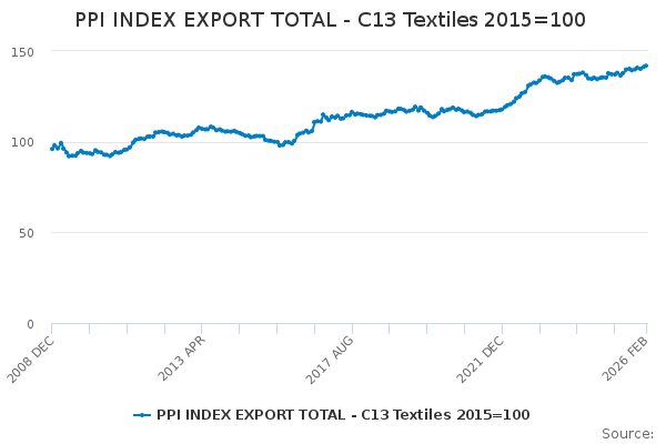 Download this time seriesPPI INDEX EXPORT TOTAL - C13 Textiles 2015=100