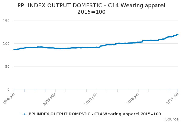 Download this time seriesPPI INDEX OUTPUT DOMESTIC - C14 Wearing apparel 2015=100