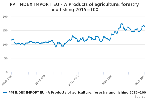 Download this time seriesPPI INDEX IMPORT EU - A Products of agriculture, forestry and fishing 2015=100