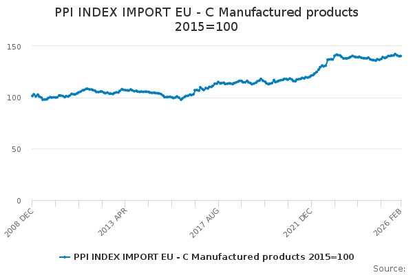 Download this time seriesPPI INDEX IMPORT EU - C Manufactured products 2015=100