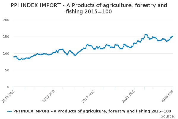 Download this time seriesPPI INDEX IMPORT - A Products of agriculture, forestry and fishing 2015=100