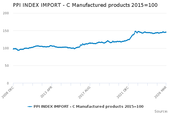 Download this time seriesPPI INDEX IMPORT - C Manufactured products 2015=100