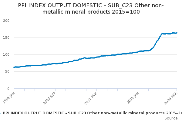 Download this time seriesPPI INDEX OUTPUT DOMESTIC - SUB_C23 Other non-metallic mineral products 2015=100