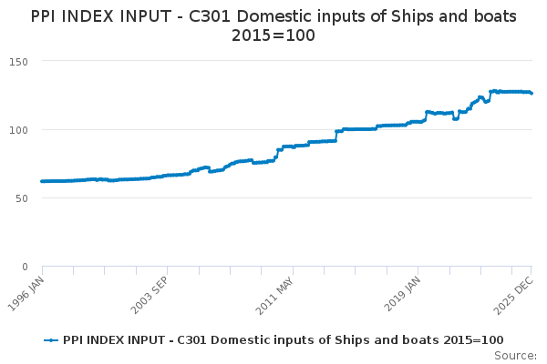 Download this time seriesPPI INDEX INPUT - C301 Domestic inputs of Ships and boats 2015=100
