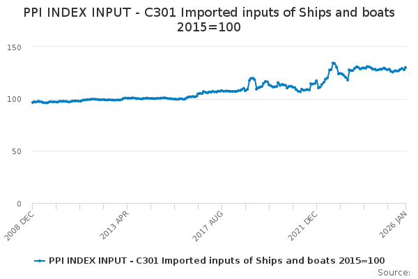 Download this time seriesPPI INDEX INPUT - C301 Imported inputs of Ships and boats 2015=100
