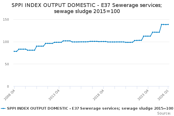 Download this time seriesSPPI INDEX OUTPUT DOMESTIC - E37 Sewerage services; sewage sludge 2015=100