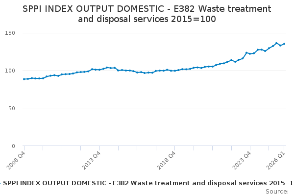 Download this time seriesSPPI INDEX OUTPUT DOMESTIC - E382 Waste treatment and disposal services 2015=100