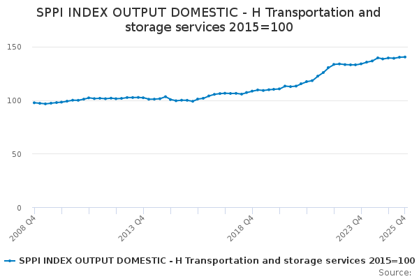 Download this time seriesSPPI INDEX OUTPUT DOMESTIC - H Transportation and storage services 2015=100