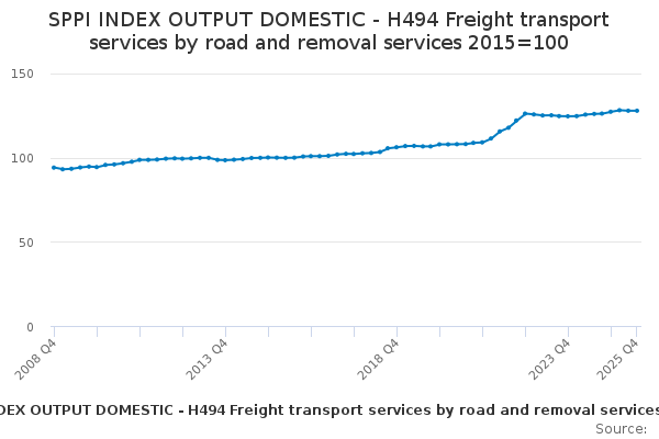 Download this time seriesSPPI INDEX OUTPUT DOMESTIC - H494 Freight transport services by road and removal services 2015=100
