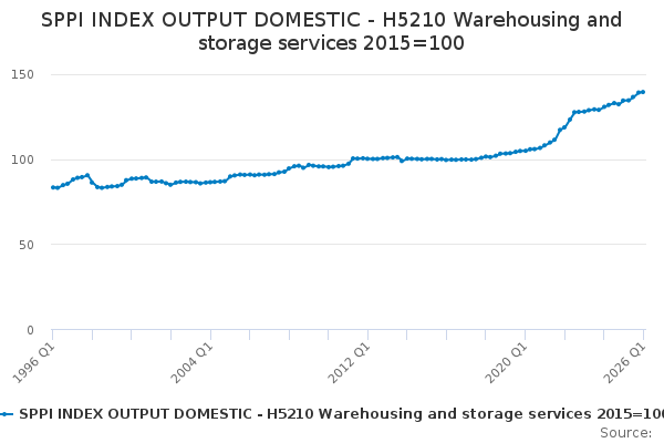 Download this time seriesSPPI INDEX OUTPUT DOMESTIC - H5210 Warehousing and storage services 2015=100