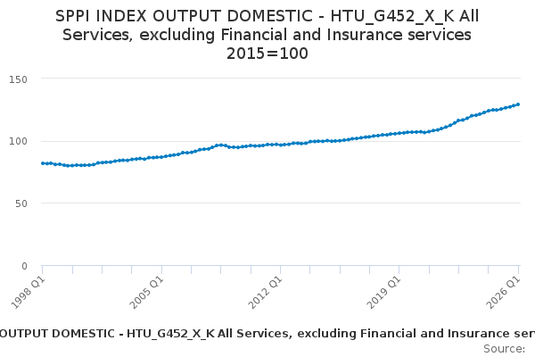 Download this time seriesSPPI INDEX OUTPUT DOMESTIC - HTU_G452_X_K All Services, excluding Financial and Insurance services 2015=100