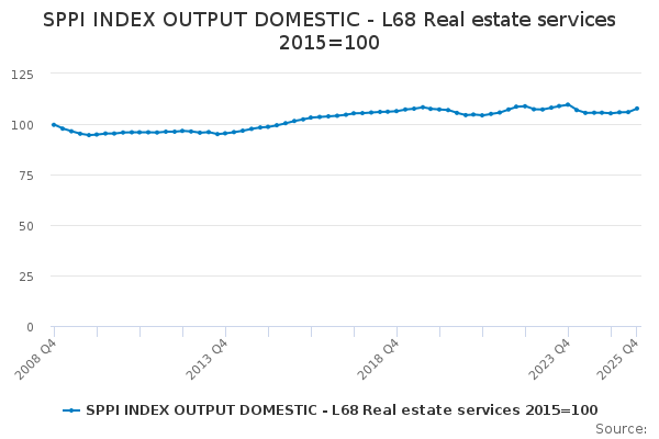 Download this time seriesSPPI INDEX OUTPUT DOMESTIC - L68 Real estate services 2015=100